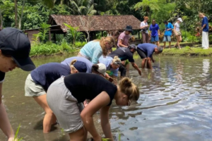Wisatawan yang ingin menikmati alam dapat mengikuti trekking menyusuri sawah, sungai jernih, dan jalur pendakian ringan.